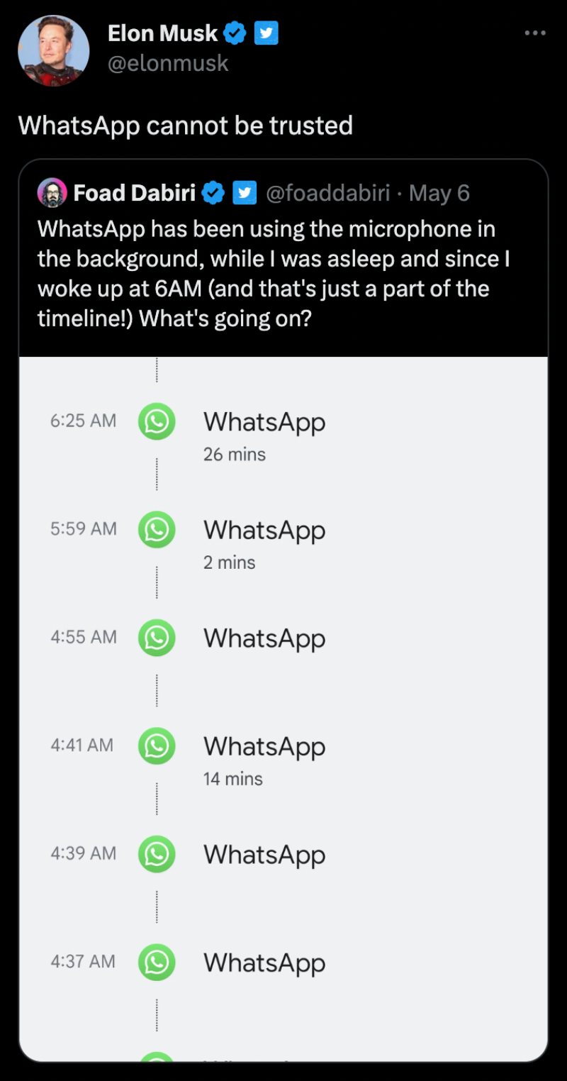 This is so so strange to find after seeing this recent Tweet about WhatsApp using Mic in the background on Android devices.